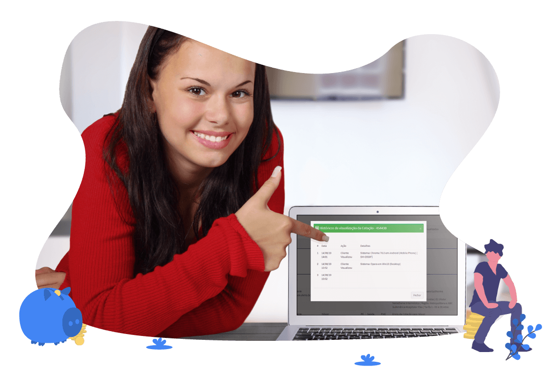 Integrado ao simulador online a área de analytics possui o relatório de Cotações Enviadas permitindo que você consiga visualizar em um clique todos os histórico das suas cotações que você enviou e quais delas já foram lidas ou abertas pelo seus clientes, inclusive mostrando detalhadamente a quantidade de vezes que ele abriu suas cotações. Experimente!