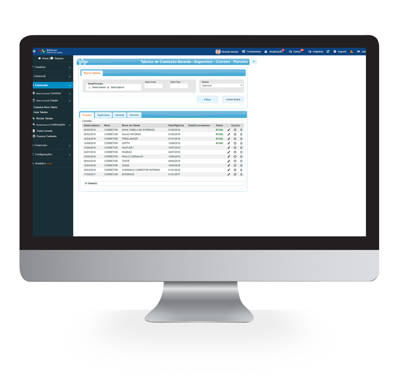 Visualize a produção do Corretor, os débitos/créditos na conta corrente e mais!